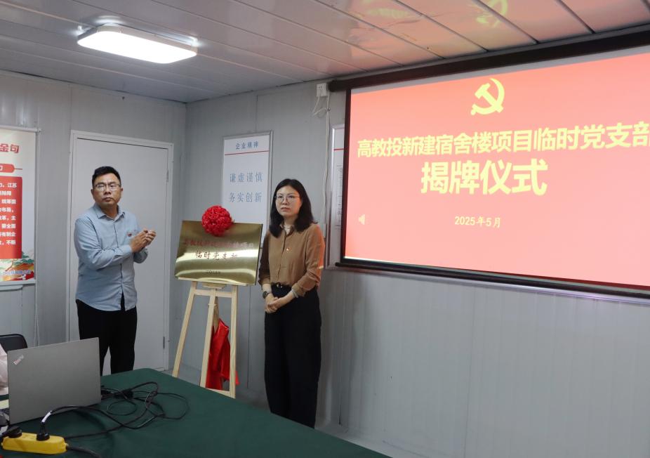 高教投新建宿舍楼项目是高教投公司在集团1115战略工程引领下,积极响应泰州学院发展诉求,化解住宿资源困局的重要项目。规划在南理工泰州科技学院东门北侧地块,新建4幢共31208.18㎡的宿舍楼。项目建成后,泰州学院宿舍紧张的状况将得到有效改善,为师生提供更安心、舒适的学习生活环境。 会上,集团领导与泰州学院领导共同为临时党支部揭牌,为项目建设筑牢组织根基。