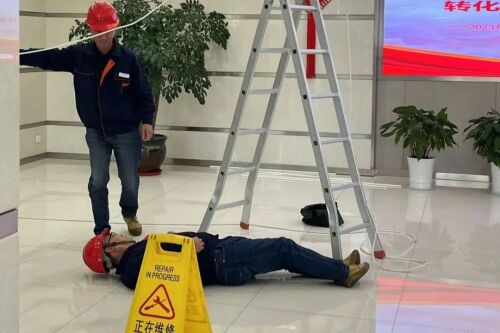 为认真贯彻落实市委、市政府和集团安全生产工作部署,全面提升集团本部职工在突发事故中的应急响应速度和处置能力。10月26日下午,集团党政办公室、应急管理部组织城投沁莲物业办公楼项目班组在集团大楼开展触电、电梯困人、CPR+AED救护综合应急演练。 此次综合演练共分三部分: 第一部分:人员触电应急演练 一楼电路维修改造期间,缆线桥接时,绝缘胶带包裹不紧密,通电后触碰到维修人员身体遭到电击,致使人员昏迷休克,现场急需对触电人员进行救护,由此展开相关应急救援工作。